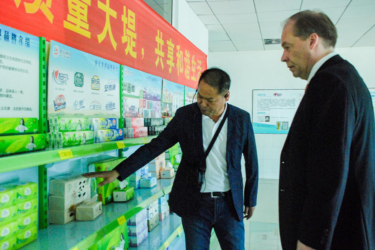 在参观东升国际(中国)纸业有限公司、福建东升国际家庭生活用品有限公司两个工厂时,肃海岚深切感受到了东升国际集团与芬兰的渊源:不远万里进口而来的芬兰木浆,通过芬兰公司提供的生产设备,生产出质量稳定的高档纸巾,走进全球亿万家庭。